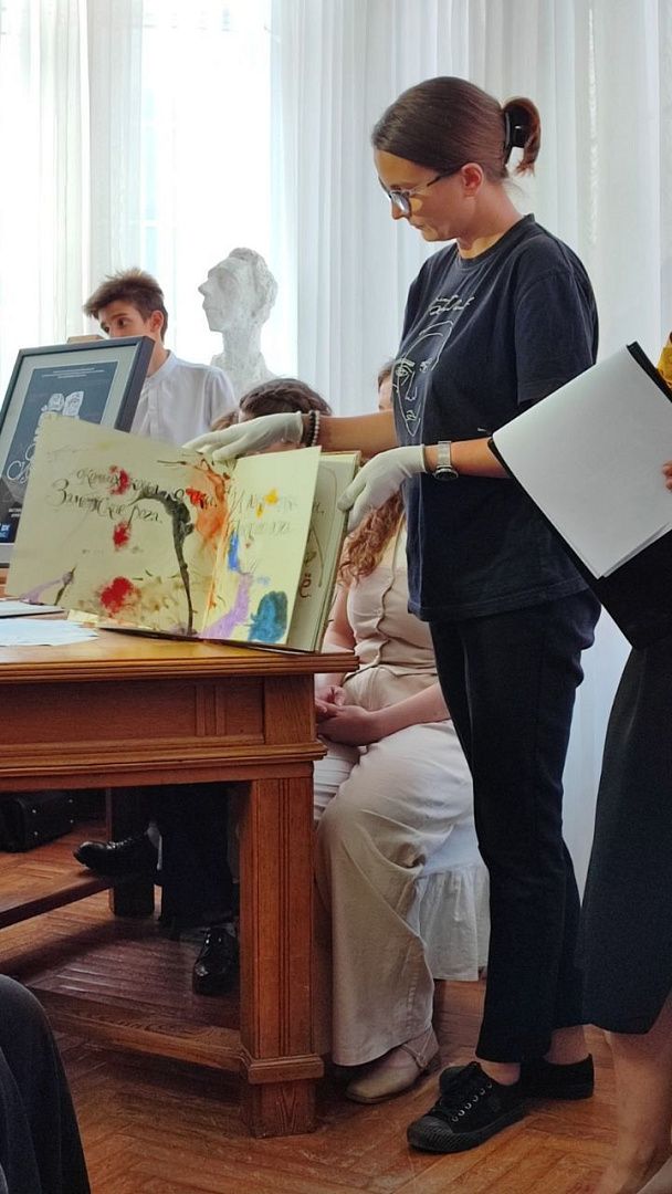 1 октября 2025 года студенты 4 курса специальности «Графический дизайн» совместно с куратором Скриповой Ириной Геннадьевной посетили уникальную выставку шрифтовой графики московского художника Юрия Ноздрина «Молчит сияющий глагол» в Доме-музее Велимира Хлебникова.